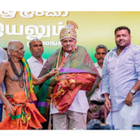 ஜனாதிபதிக்கு வல்வை ஸ்ரீ முத்துமாரியம்மன் பிரதம குரு ஸ்ரீ தண்டபாணிகதேசிகர் பொன்னாடை அணிவித்திருந்தார்.